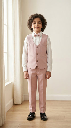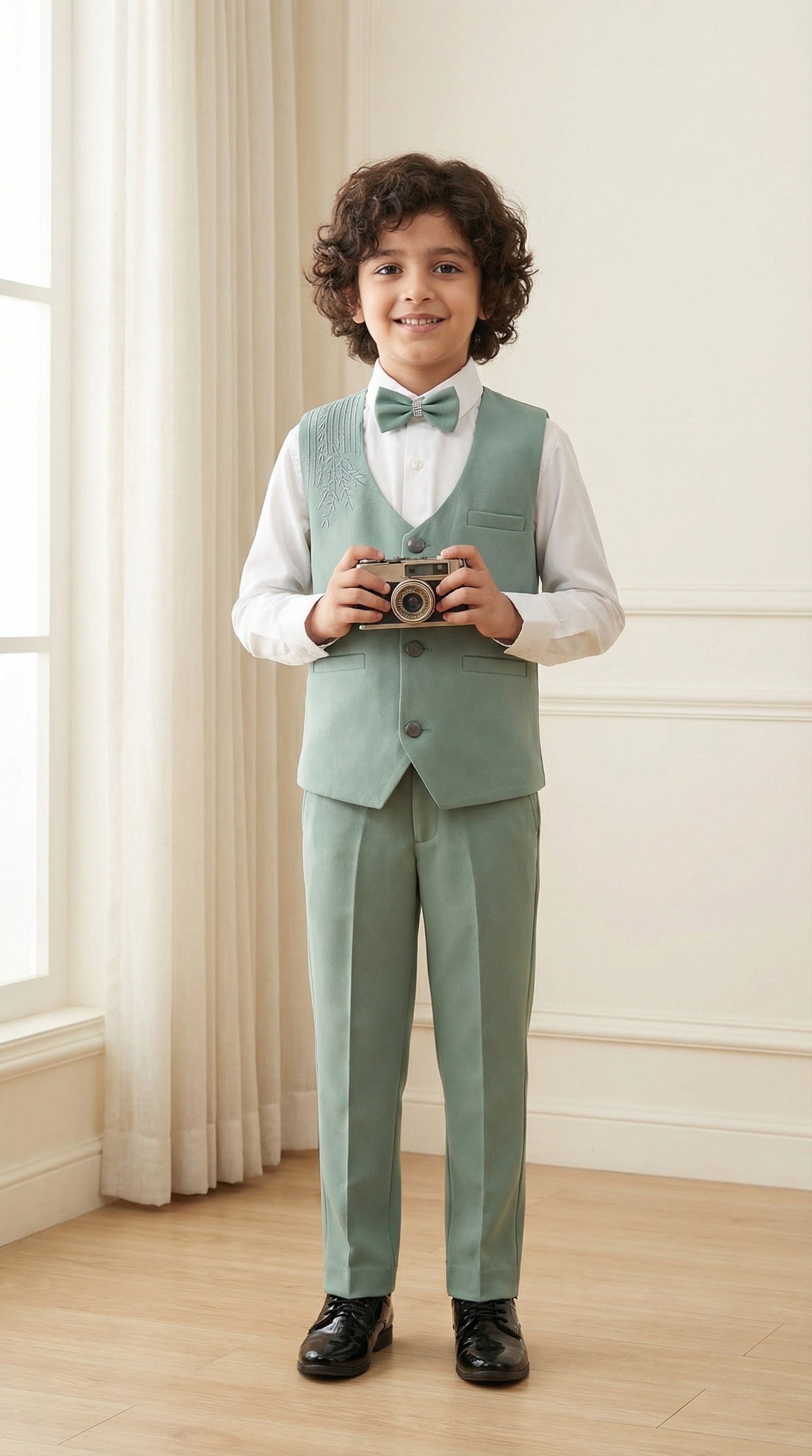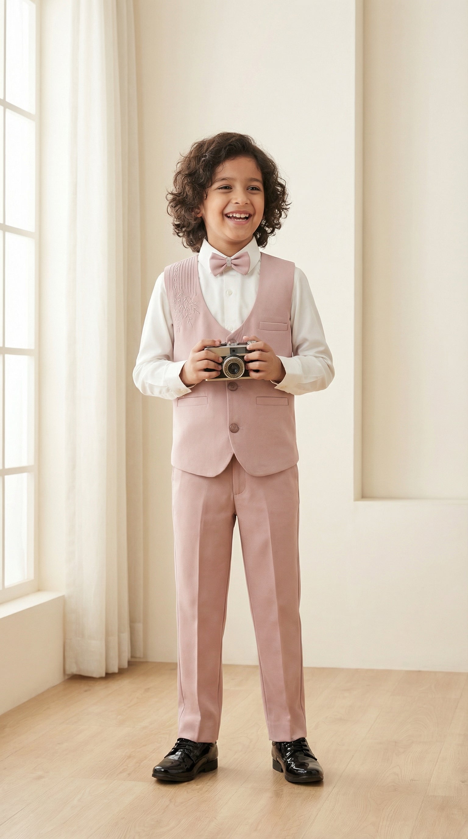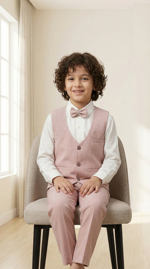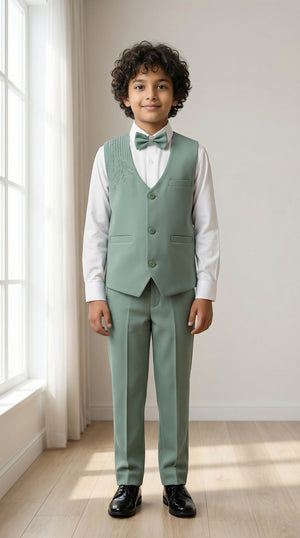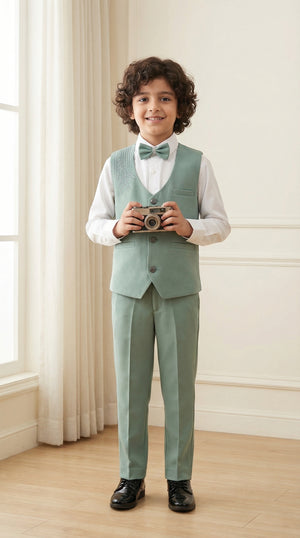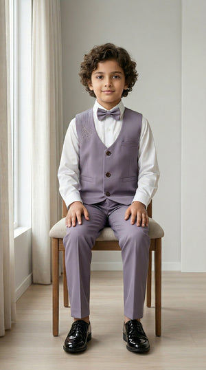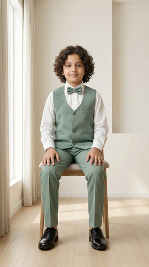 Ahhaaaa Boys' Luxury Japani Silk 3-Piece Waistcoat Set | Designer Striped & Textured Party Wear (2-8 Years)